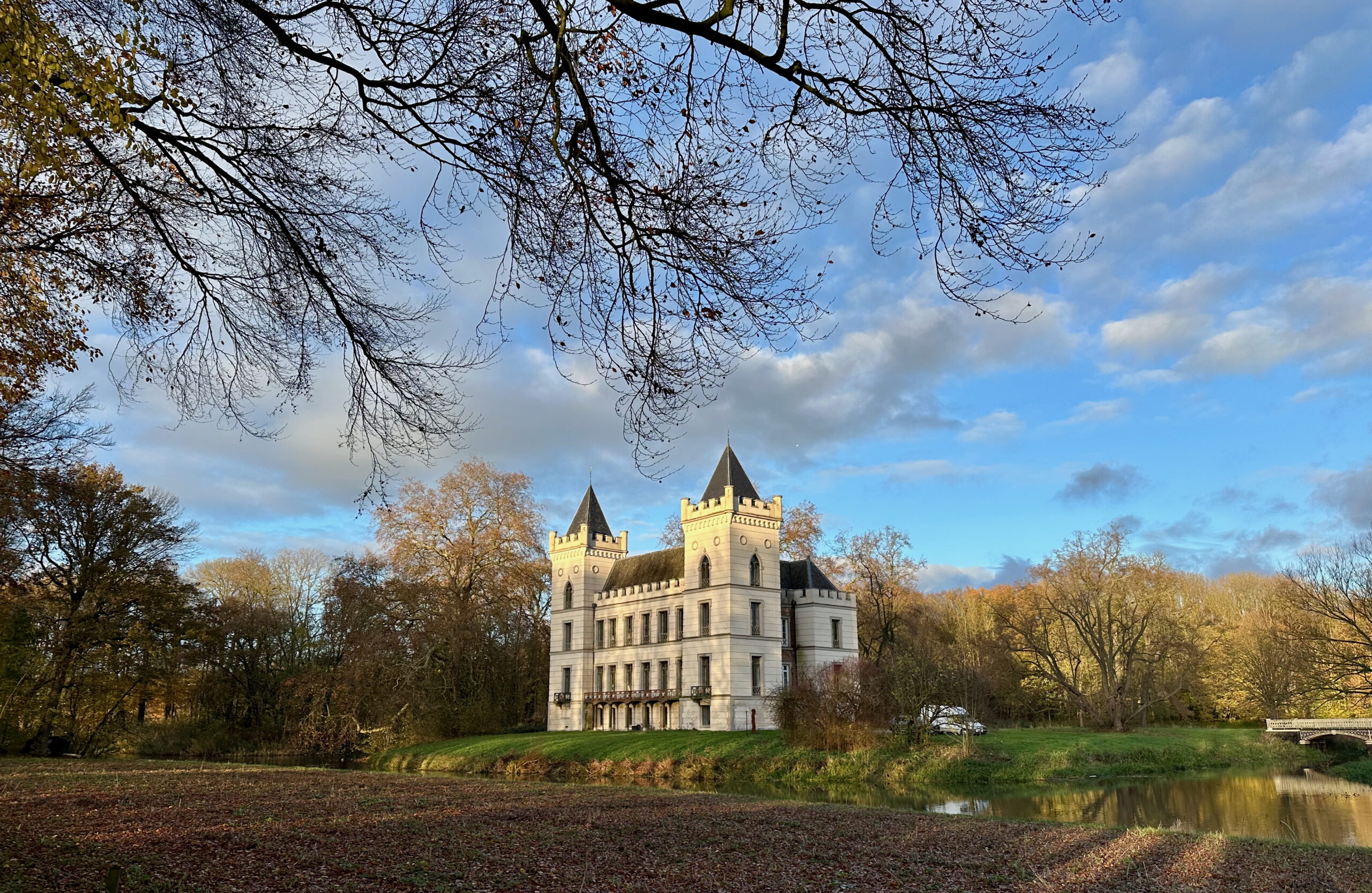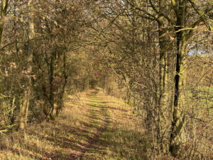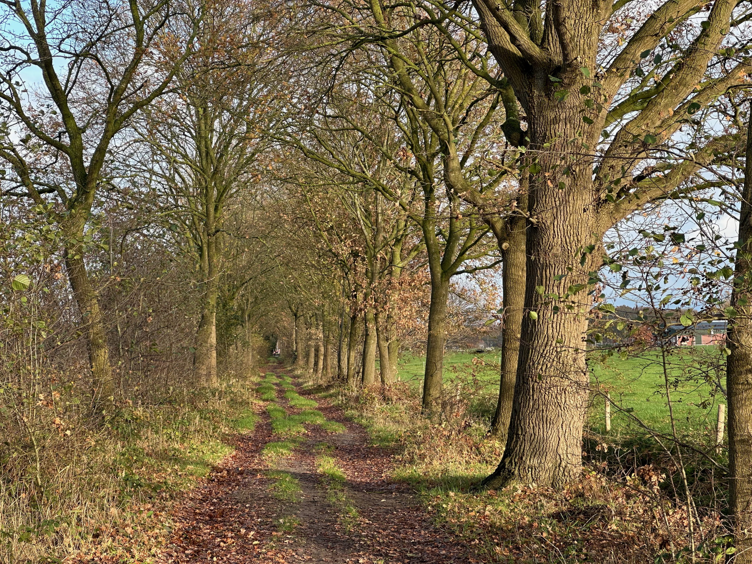 Burgers en boeren leven hier vlakbij elkaar – veeteeltbedrijven volgen op de vrijstaande woningen aan de rand van Driebergen. De verharde weg gaat over in opnieuw zo’n mooie, onverharde rechte laan langs de ontginningslijnen van eeuwen geleden. Over de weiden is boven de boomkruinen het silhouet van de toren van Sterkenburg 5 te zien, net als Beverweerd zo’n middeleeuws adellijk kasteel.