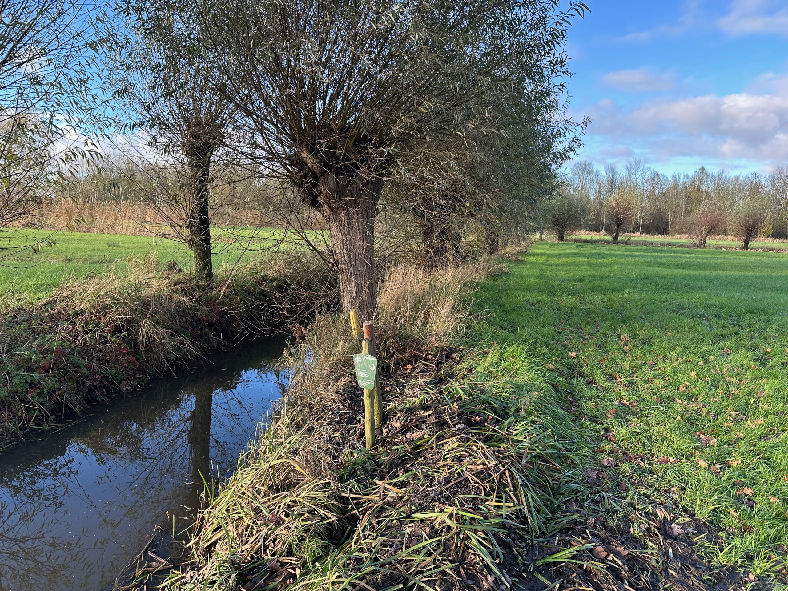 VARIANTEN Variant 1 volgt de knooppunten; variant 2 (onverharde wildernis in plaats van asfalt, de rode lijn op de kaart) wijkt daar 700 meter na knooppunt 37 van af. Ga na die 700 meter rechtsaf bij een groen bord ‘Opengesteld’. Je wandelt langs een rij wilgen en dan om een bos heen. Zie de routekaart en de GPS. Aan het eind kom je via een smalle plank terug op de hoofdroute. Mocht je die te smal vinden, dan kun je (in een rechte lijn, blauw op de kaart) teruggaan naar de Broekweg en daar de hoofdroute weer oppakken. Dat levert een extra (mooi) rondje van 1200 meter op.