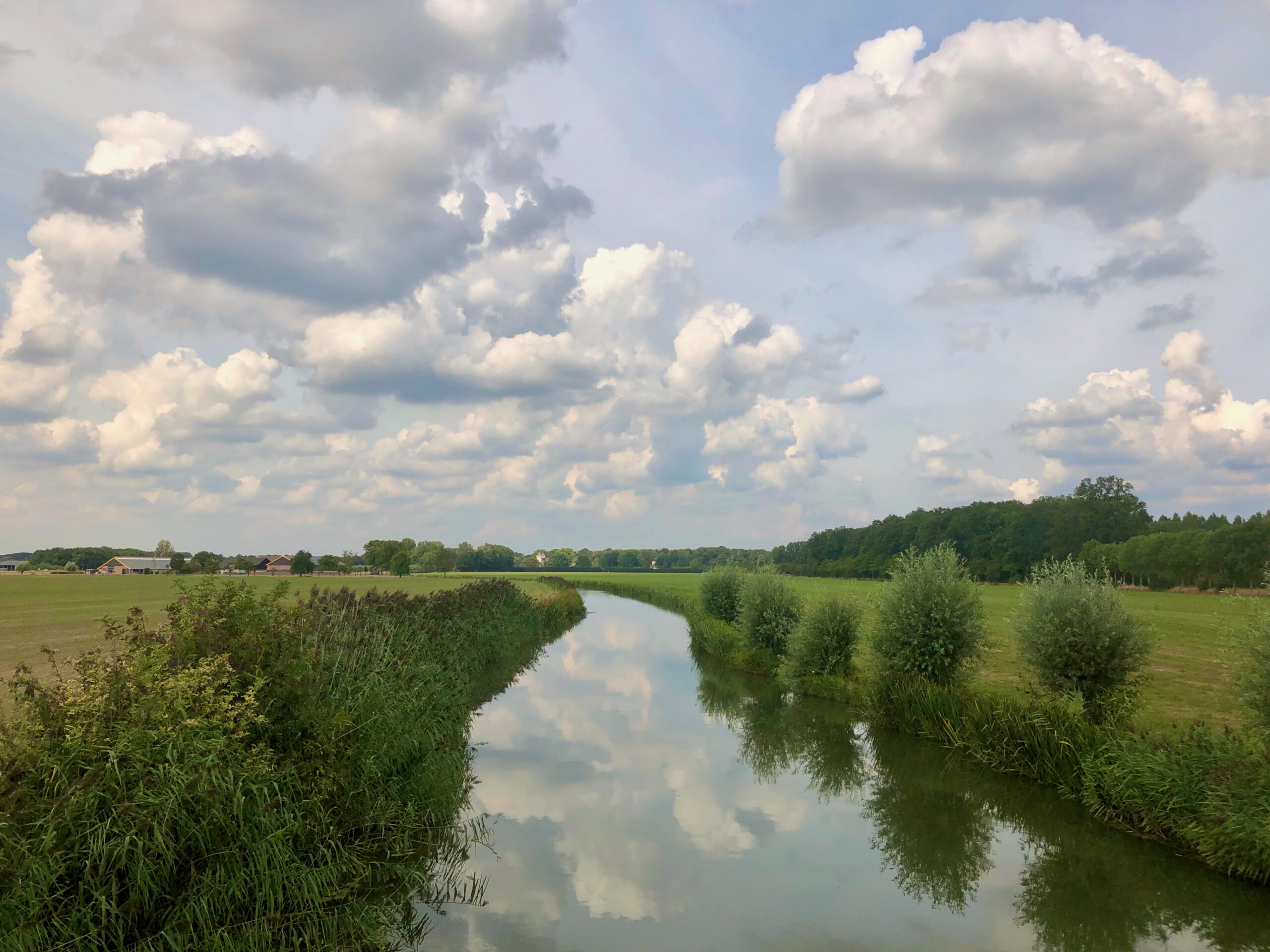 In welke windrichting je ook kijkt, bij de tweede passage van de Langbroekerwetering 2 valt op hoe strak de lijnen van wegen en sloten zijn getrokken. En toch, zo netjes gerangschikt voelt het niet overal. Wie wat wildernis wil neemt op de Broekdijk de afslag naar rechts en wandelt langs een wilgenrij door het weiland. Snel verdwijnt de bewoonde wereld uit zicht en struin je langs de bosrand uitkijkend over de verstilde weide, een ongekend afgelegen gebiedje. Maar ook wie de hoofdroute volgt, komt na knooppunt 59 uit in de wildernis van natte broekbossen en ruime weiden.